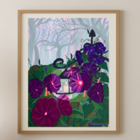Step into the dreamlike world of At The Threshold of Nasturtiums, an original acrylic gouache painting reimagined as a fine art print. This lush, whimsical scene draws you into a quiet realm where light flickers softly through nasturtium leaves and imagination takes root.